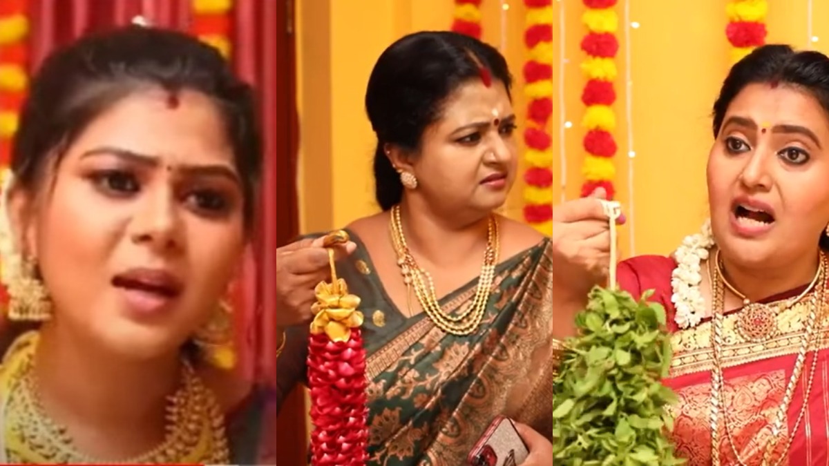 அதேபோல ஸ்ருதியிடம், ஸ்ருதி அம்மா நம்ம ட்ரடிஷனல் படி நீ மாலை போடணும் என்று சொல்ல, அதற்கு விஜயா அது எப்படி ஸ்ருதி இப்போ எங்க வீட்டு பொண்ணு அதனால எங்க முறைப்படிதான் அவ ரோஜா பூ மாலை போடனும் என்று இருவரும் மாறி மாறி சண்டை போட்டுக் கொண்டிருக்கின்றனர். ஒரு கட்டத்தில் ஸ்ருதி கோபமாகி நான் சொல்றதுதான் நீங்க ரெண்டு பேரும் கேக்கணும். மாலை போடுறது நான் தானே? அதனால எனக்கு புடிச்ச மாதிரி நான் போட்டுகிறேன் என்று சொல்லி ரெண்டு மாலையையும் வாங்கி கழுத்தில் போட்டுக் கொள்கிறார்.