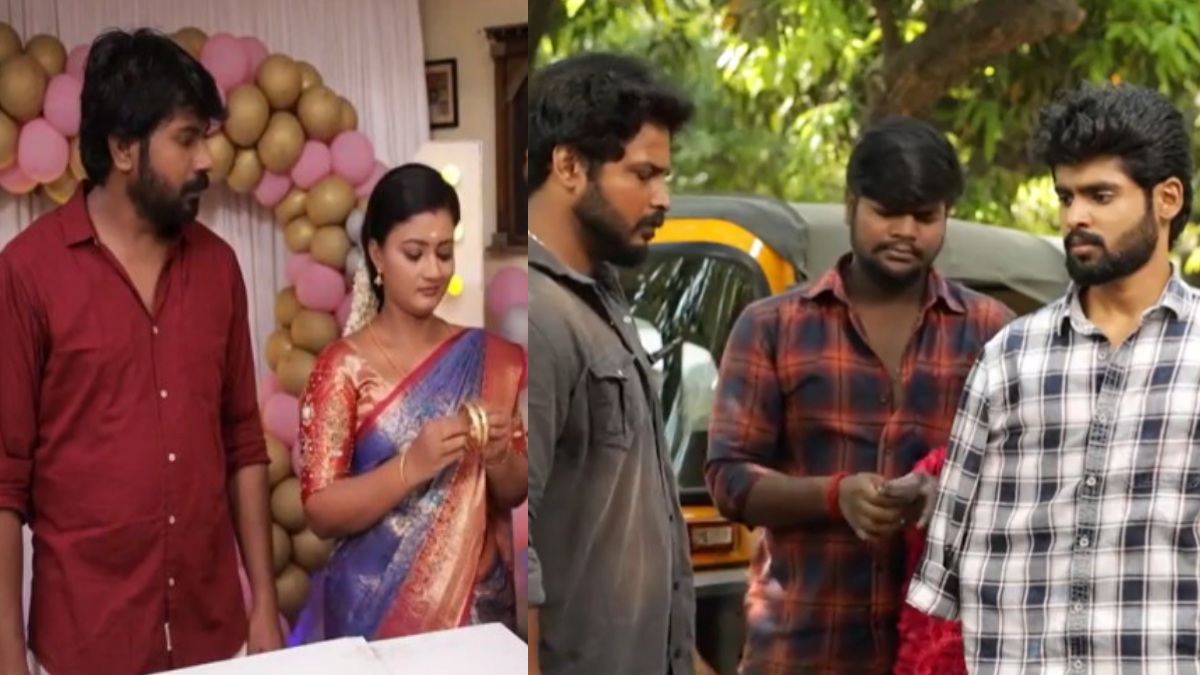 அதனால் கணவன் மனைவி இருவருக்கும் சண்டை வரணும். முத்துவும் மீனாவும் சந்தோஷமா கல்யாணம் நாளை கொண்டாடக்கூடாது என்று பேசிக் கொண்டிருக்கிறார். மறுபக்கத்தில் பங்க்ஷன் தொடங்கியதும் ரவியும், ஸ்ருதியும் பெரிய கேக்குடன் வீட்டுக்கு வர மனோஜ் இவ்வளவு பெரிய கேக் இருக்கா என்று வாயை பிளக்கிறார். அந்த நேரத்தில் ஸ்ருதியின் அம்மா வீட்டிற்கு வர அவரைப் பார்த்ததும் முத்து எல்லாரும் தள்ளிருங்க ஏதாவது காணாம போயிடுச்சுன்னா நம்மள தான் சொல்லுவாங்க என்று சொல்ல,