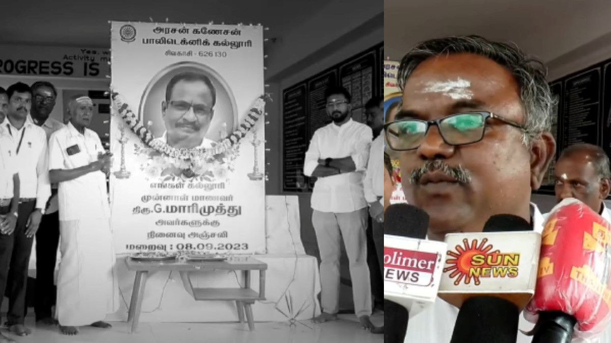 இந்த நிலையில் தேனி மாவட்டத்தில் பிறந்த நடிகர் மாரிமுத்து சிவகாசியில் உள்ள அரசன் கணேசன் பாலிடெக்னிக் கல்லூரியில் தான் தன்னுடைய பட்டப்படிப்பை படித்து முடித்து இருக்கிறார். அது பற்றி அவர் பல பேட்டிகளில் பேசியும் இருந்தார். இந்த நிலையில் அந்த கல்லூரியில் தற்போது படித்துக் கொண்டிருக்கும் மாணவர்கள் மாரிமுத்துவோடு படித்த நண்பர்களோடு சேர்ந்து அஞ்சலி செலுத்தி இருந்தனர்.