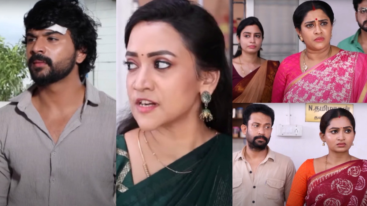 இன்றைய எபிசோடின் ஆரம்பத்தில் ஹாஸ்பிடலில் அர்ஜுனின் அக்காவும் அம்மாவும் தமிழை போலீசில் பிடித்துக் கொடுத்திருக்கலாம் என்று கேட்க, அதற்கு அர்ஜுன் அவனை போலீசில் பிடித்துக் கொடுத்தால் நானும் தான் மாட்டிக்கொள்வேன். நாங்க தான் அவன்கிட்ட சண்டைக்கு போனோம் என்று அங்கு நடந்தவற்றை பேசி கொண்டிருக்கிறார்.