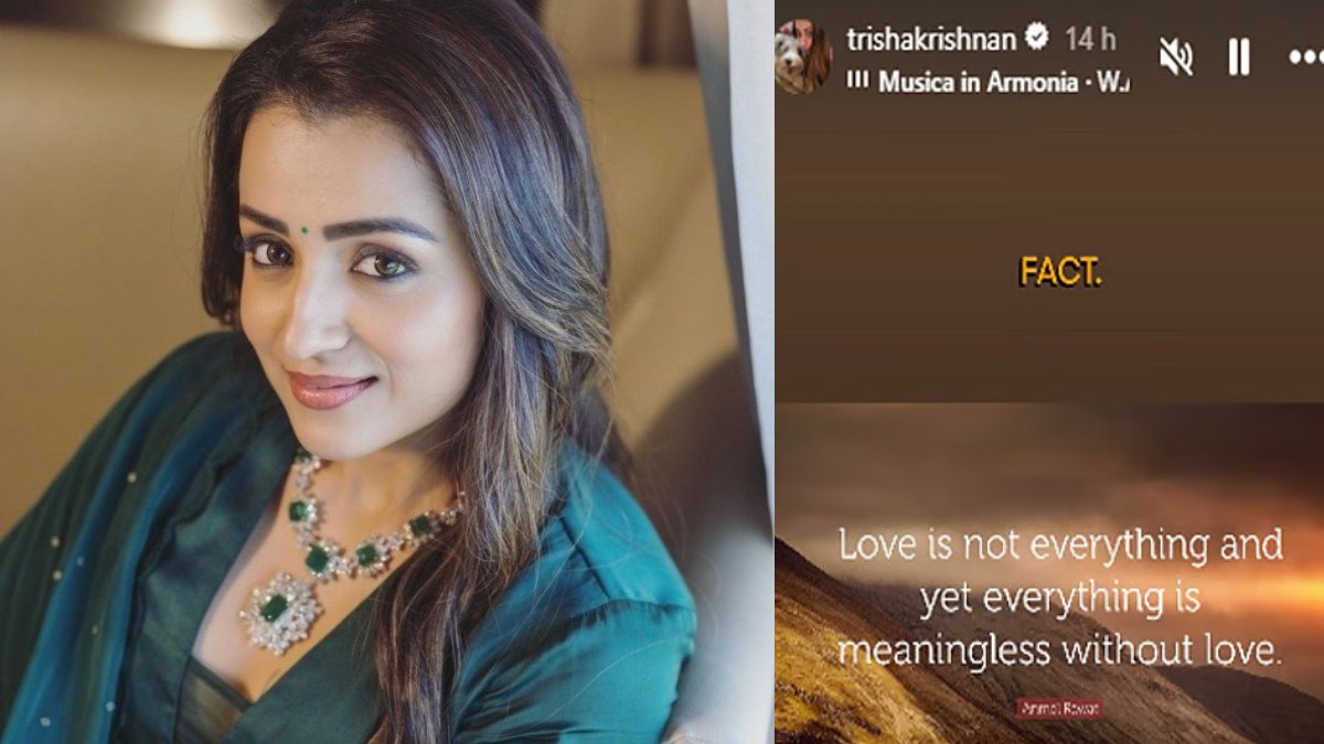 சமீப காலமாக பார்த்தால், திரிஷா எதை செய்தாலும் அது நேராக டிரெண்ட் ஆகிறது. ஒரு நாள் கோயிலுக்கு தன்னுடைய வளர்ப்பு நாயை அழைத்துச் சென்ற புகைப்படம் வைரலாகிறது... இன்னொரு நாள் ஒரு திருமண நிகழ்ச்சியில் விஜய் உடன் சேர்ந்து வந்த புகைப்படம் பேசப்படுகிறது... இப்படியே தொடர்ந்து அவர் சுற்றி சர்ச்சை சூழல் உருவாகிக் கொண்டே இருக்கிறது. இந்த பின்னணியில் தான் இப்போது ஒரு சின்ன இன்ஸ்டாகிராம் ஸ்டோரி பெரிய விவாதமாக மாறியுள்ளது.