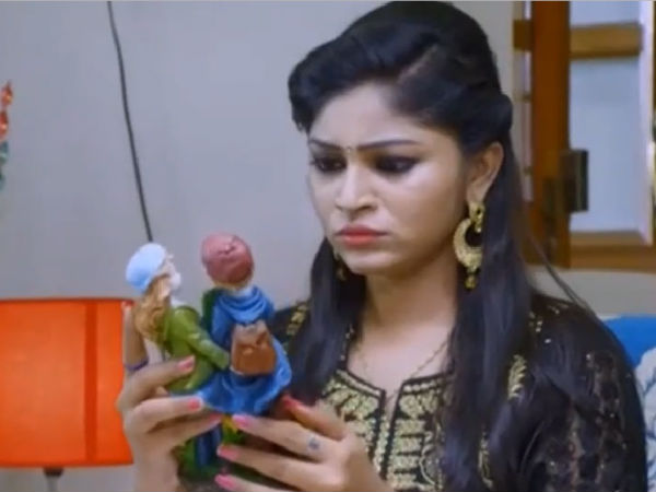 ஒரு சிறுவனும், சிறுமியும் இருப்பது போல மண் பொம்மை பரிசாக வாங்கித் தர்றான்.மறுக்க முடியாம வாங்கிக்கறா நிலா. வீட்டிலேயே கொண்டு வந்து சஞ்சய் இறக்கிவிட, இது சஞ்சய் கார் மாதிரி இருக்கேன்னு ஆசையா ஒடி வர்றா ஸ்வேதா.