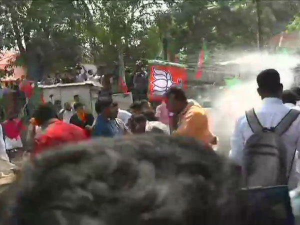 போராட்டத்தை தொடர்ந்து பாஜகவினர் போலீசார் இடையே தள்ளுமுள்ளு ஏற்பட்டது.இதில் போலீசார் பாஜகவினர் மீது தடியடி நடத்தினர். பின் கூட்டத்திற்கு கண்ணீர் புகை குண்டுகளை வீசினர். தற்போது சில பாஜகவின் இதில் கைது செய்யப்பட்டு இருக்கிறார்கள். இதனால் அங்கு பரபரப்பான சூழ்நிலை நிலவி வருகிறது.
