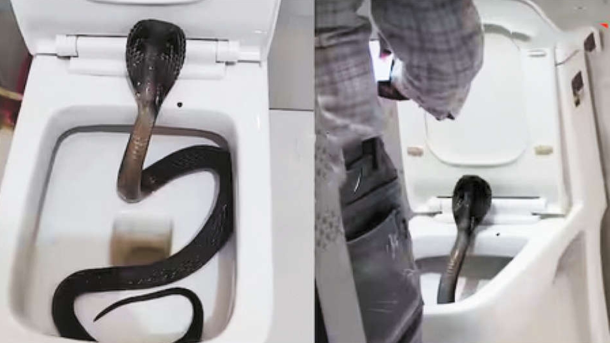 கழிவறைக்குள் எட்டிப்பார்த்த பாம்பு