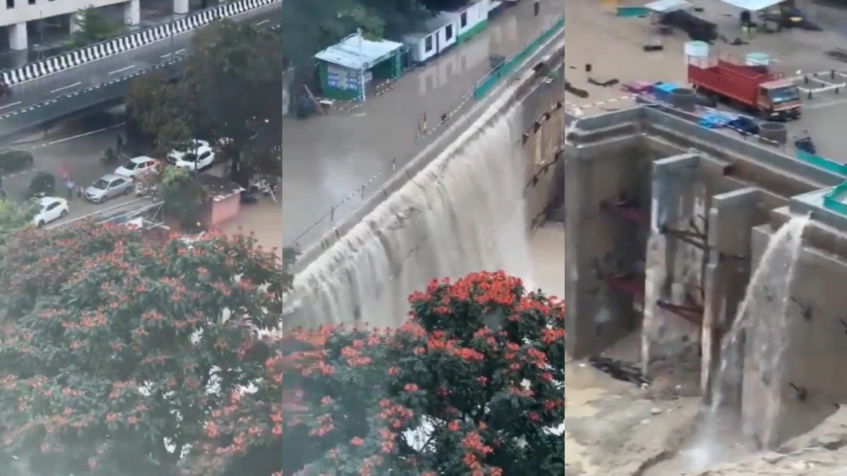 ஒரு வீடியோவில், வெள்ளத்தில் சிக்கிய கார்கள் தெரிகிறது. அதே டெக் பார்க் உள்ளே சுவரில் இருந்து பெருமளவு தண்ணீர் கொட்டும் காட்சியும் உள்ளது. இது ஒரு நீர்வீழ்ச்சியைப் போல தோன்றுகிறது. மற்றொரு வீடியோ வெள்ளத்தால் பாதிக்கப்பட்ட பகுதியைக் காட்டுகிறது. கார்கள் வெள்ளத்தில் சிக்கி தத்தளிக்கும் காட்சியும் உள்ளது.