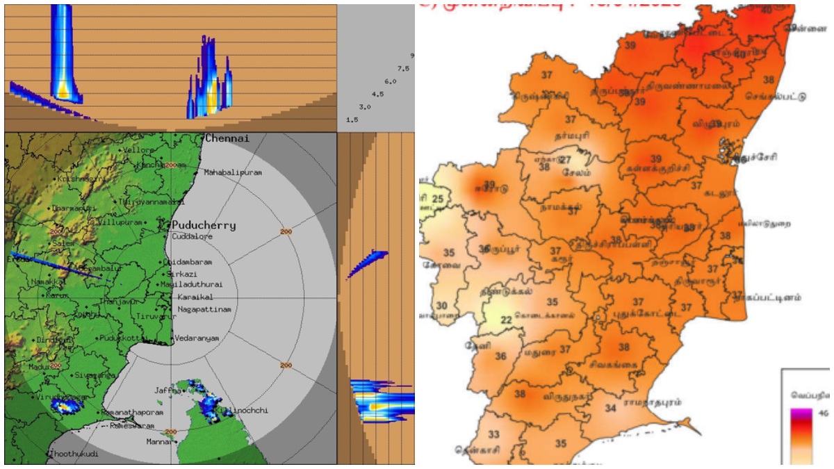 அதிகபட்ச வெப்பநிலையாக வேலூரில் 40.2° செல்சியஸ் வெயில் பதிவாகியிருக்கிறது. குறைந்தபட்ச வெப்பநிலையாக (சமவெளிப்பகுதிகளில்) கரூர் பரமத்தியில் 23.0° செல்சியஸ் பதிவாகியிருக்கிறது. கடந்த 24 மணி நேரத்தில், தமிழகத்தில் அதிகபட்ச வெப்பநிலை ஒருசில இடங்களில் 1-2° செல்சியஸ் உயர்ந்துள்ளது. ஏனைய தமிழகம், புதுவை மற்றும் காரைக்கால் பகுதிகளில் அதிகபட்ச வெப்பநிலையில் பொதுவாக பெரிய மாற்றம் ஏதுமில்லை.