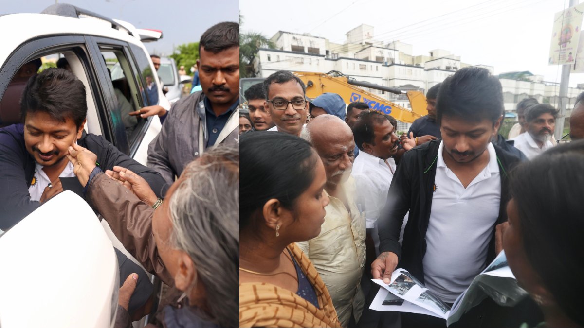 இராயப்பேட்டை ஐஸ் ஹவுஸ் அருகே மழை நீர் வடிகால் வழியாகவும், எந்திரங்கள் மூலமாகவும் மழைநீர் வெளியேற்றம் ஆவதை ஆய்வு செய்தார். மழைநீர் வெளியேற்றம் மட்டுமன்றி, மக்களுக்கு அத்தியாவசியப் பொருட்கள் கிடைப்பதையும் உறுதி செய்ய அதிகாரிகள் - அலுவலர்களை அறிவுறுத்தினார் துணை முதல்வர் உதயநிதி.