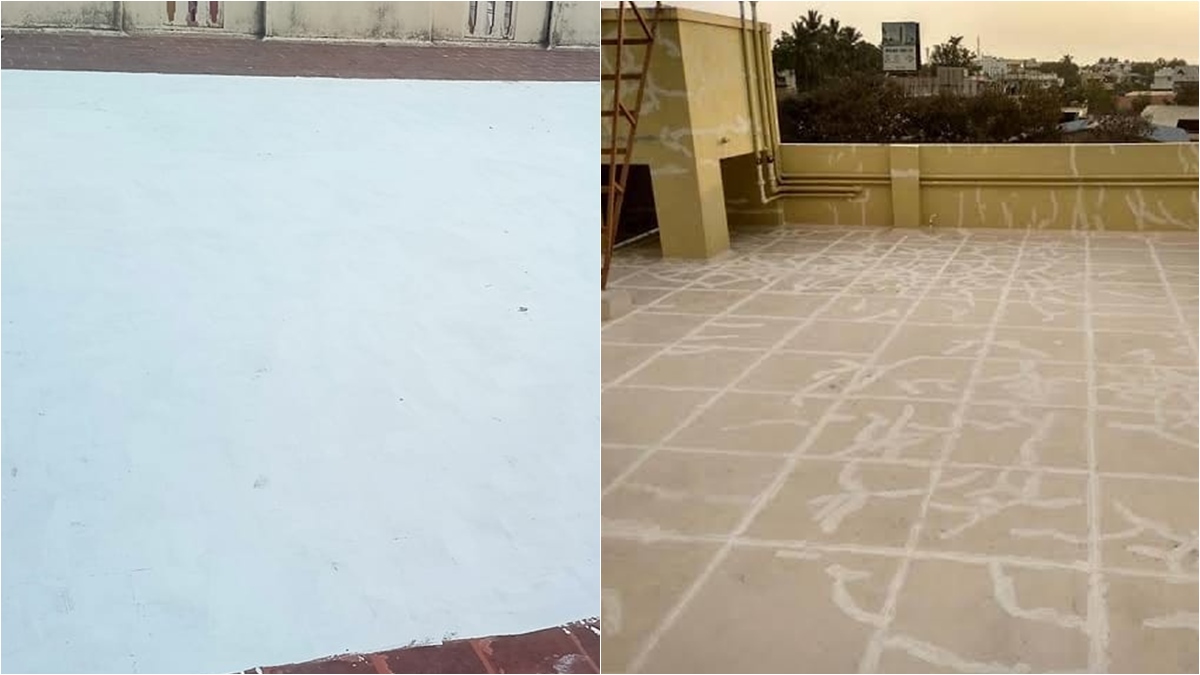 இப்படி வெள்ளை அடிக்கப்பட்ட மாடித் தரையில் நீங்கள் 45 டிகிரி வெயில் அடித்தாலும் வெறும் காலில் நிற்கலாம், குளிர்ச்சியாகவே இருக்கும். இதற்கு செலவு குறைவானது முதல் அதிகம் செலவு வைப்பது வரை பல முறைகள் இருக்கிறது.