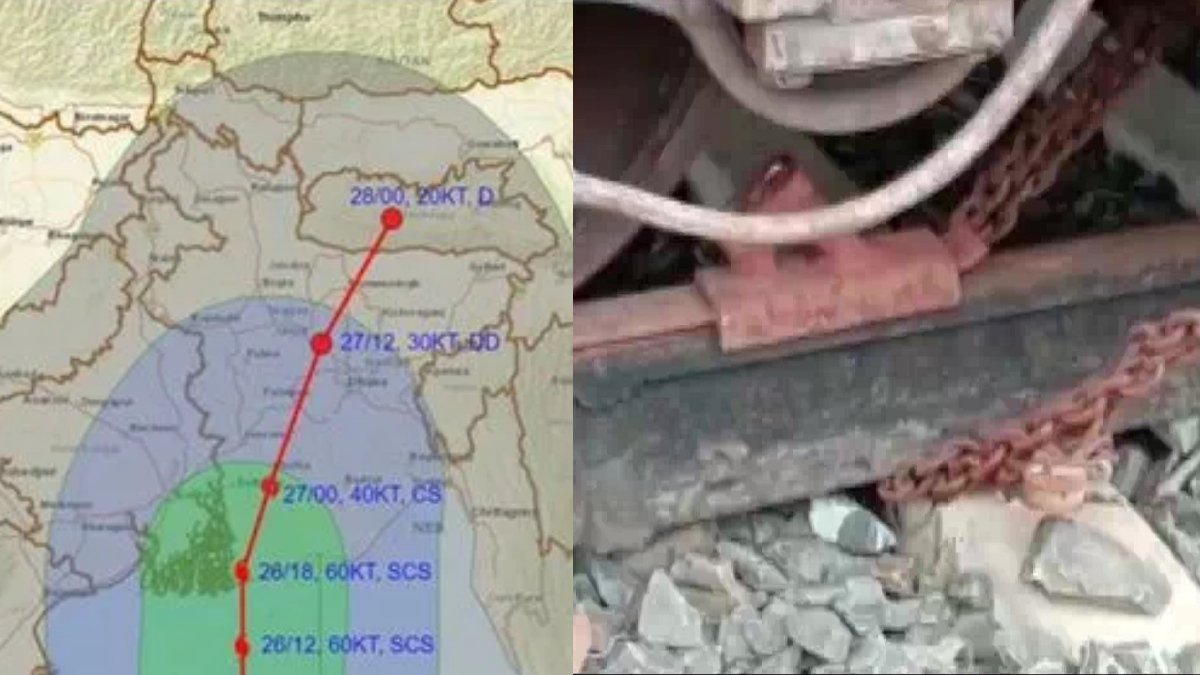 கடுமையான புயலாக கரையை கடந்த ரெமல்.. ரயில் சக்கரங்களை சங்கிலி போட்டு கட்டி வைத்த ஊழியர்கள்