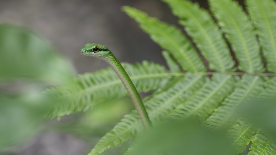 ஆபத்தை ஏற்படுத்தாத இந்த பாம்பு மர உச்சியில் இருந்து தாவக்கூடியது,சுறுசுறுப்பான விரைவான துணிவுடைய பாம்பு